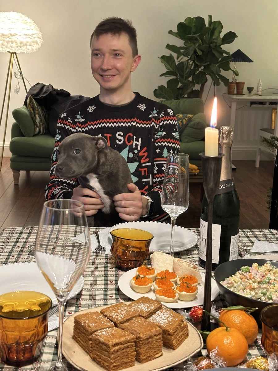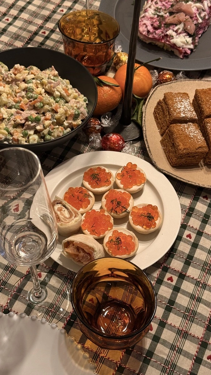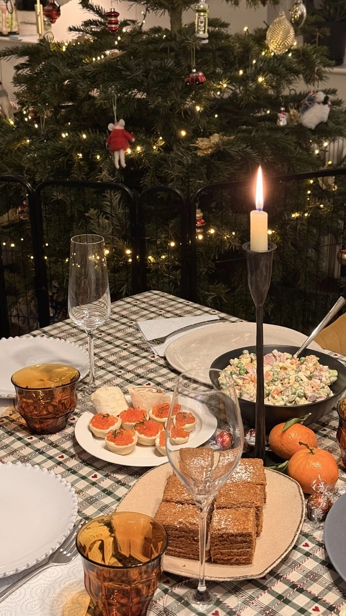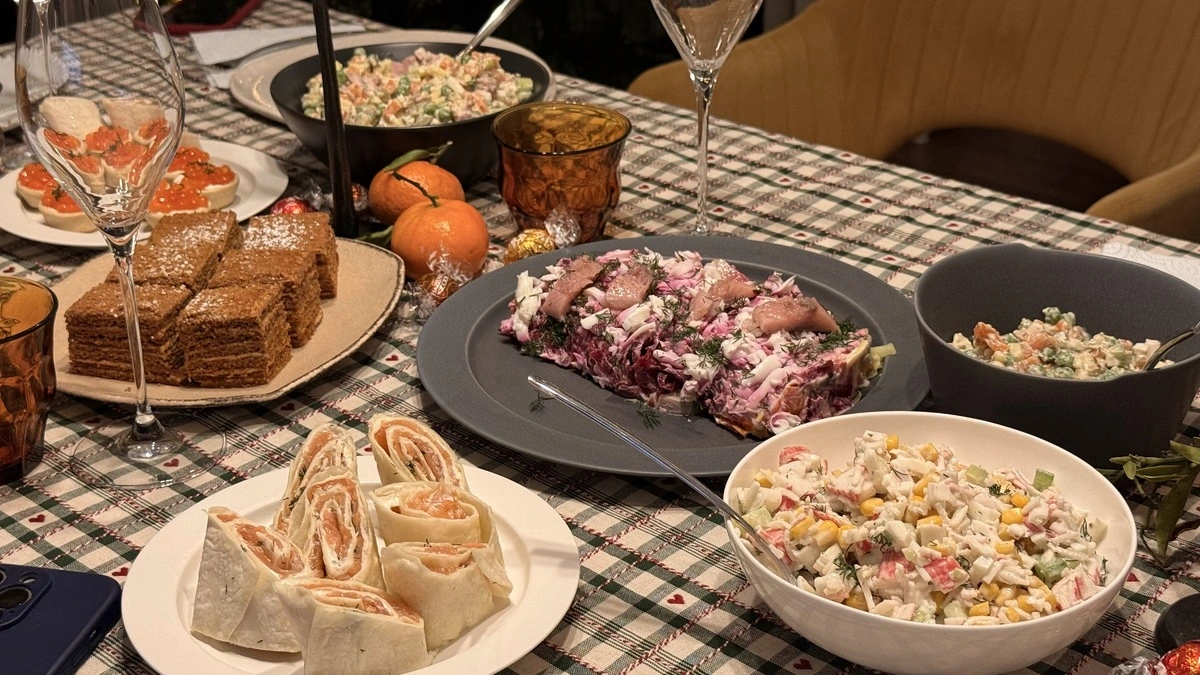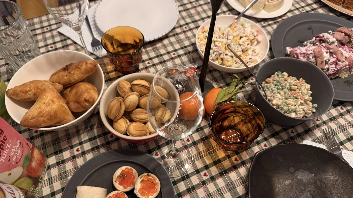 Tikhon and his friends discovered TADAAA! just in time for their New Year’s Eve at home. With a menu built around beloved classics — Olivier salad, herring under a fur coat, walnut cookies with condensed milk, and a honey cake — the evening felt warm, festive and familiar. Drinks and alcohol were included, and the delivery was handled directly by the founders, adding a personal touch the guests really appreciated.